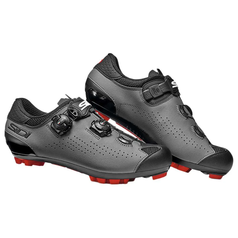 – Lighter and more performing the new Sidi MTB sole is made of nylon with PU (polyurethane) inserts. The shape of the sole tread has been specifically designed for mountain bike, it allows a good grip, facilitates mud dispersion and provides the right stability. The central insert with the Sidi logo works as non-slip and it is practical and useful especially to the less experienced users. The toe area that is more subject to wear, especially when walking, can be replaced by screws and still offers the possibility to mount crampons to improve traction on particularly muddy grounds. SR17 represents the ultimate result in terms of stiffness for pedaling and flexion for walking.