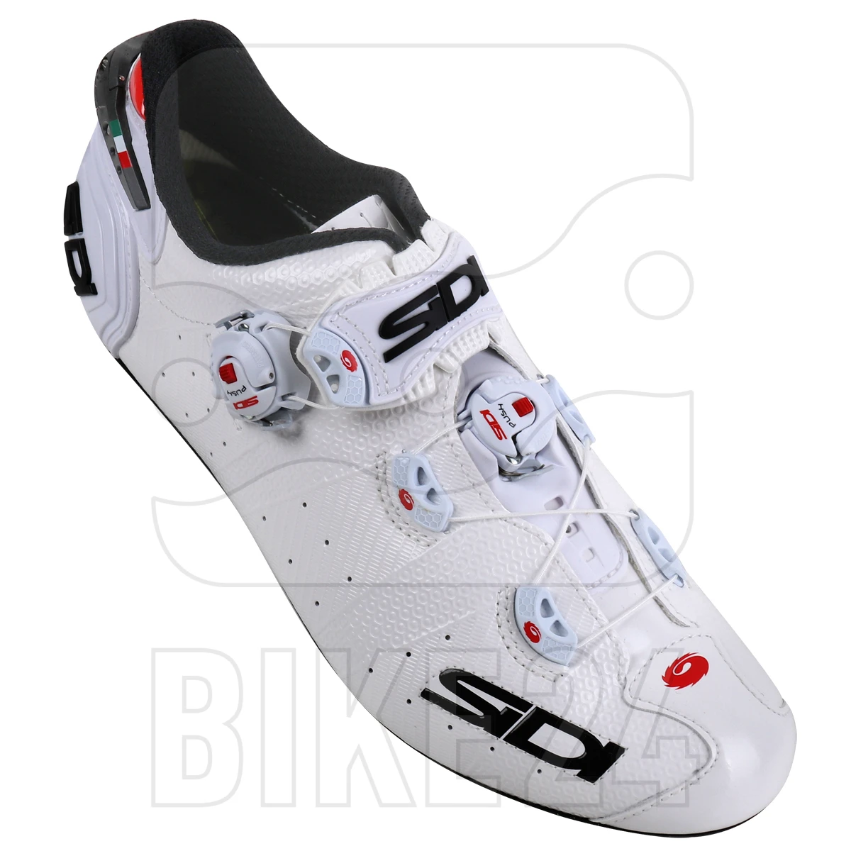 The ROAD model from SIDI at professional level, developed in close cooperation with the best riders of the Protour teams. Due to the direct power transmission to the light, stiff full carbon sole, the shoe offers first-class performance with even pressure distribution over the whole foot. Maximum comfort thanks to individual heel adjustment and a new combination and positioning of the twist closures.